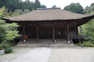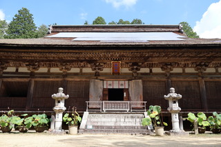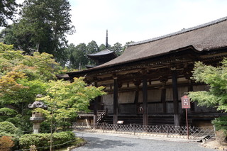 | 国宝の本堂、南北朝時代の1366年に再建されました。こちらは、比叡山の根本中堂と同じ建築様式で、焼き討ちにあっていない善水寺は、延暦寺より古く、本来の延暦寺の様式を引き継いでいます。 | |