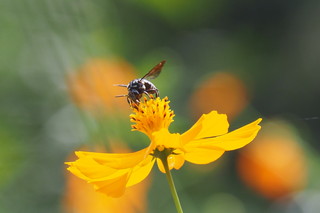 | 境内には、キバナコスモスがあり、珍しい青い蜂が生息しています。出会えると幸せになれるとか、、、しっかり出会えましたよ。 | |