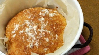 4 厚手鍋(耐熱)にクッキングペーパーを敷き、生地をおく。