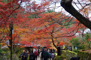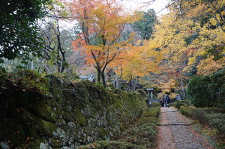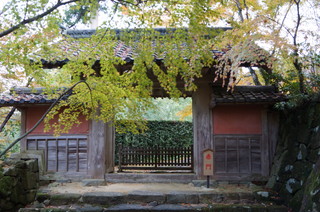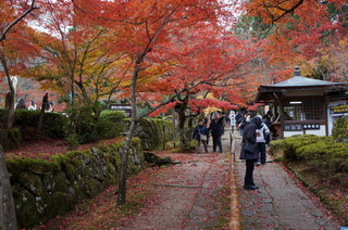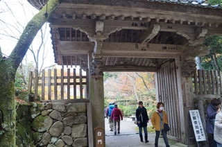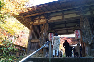 | 黒門。ここから本堂まで参道が続き、結構な距離を登ります。 | 紅葉の落ち葉で赤い絨毯が出来ていました。 |