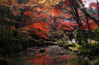 | 金剛輪寺 紅葉 2017年 <こんなところ> http://kongourinji.jp/ 金剛輪寺は、奈良時代の中頃、天平13年(741)に聖武天皇の勅願で行基菩薩によって開山されました。平安時代の初めには、比叡山より慈覚大師が来山、天台密教の道場とされて以来、延暦寺の末寺、天台宗の大寺院となりました。 本堂は国宝で、三重塔は重要文化財に指定されています。 こちらは、紅葉が有名で、その赤さから「血染めの紅葉」と呼ばれています。 |