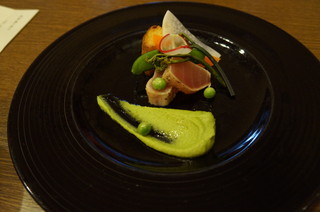 | 鮪に豌豆のソース。 |