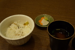 | 蕗の薹の天ぷらご飯。これもかわってますね、初めて食べました。 |
