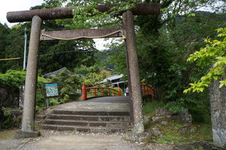 | 熊野古道を通り参道へ、熊野那智大社の鳥居が見えてきました。 |