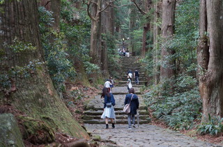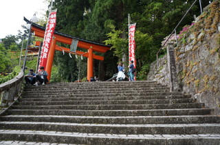 熊野那智大社に到着です。それにしても、熊野古道から、この参道の石段は厳しい! |