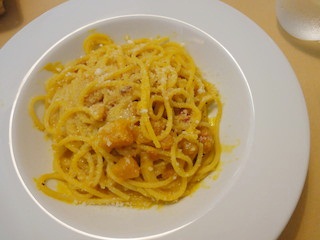 お友達はベーコンとカボチャのクリームソース。濃厚なクリームソース+カボチャの自然な甘みでとっても食べ応えのあるパスタだったそうです。 |