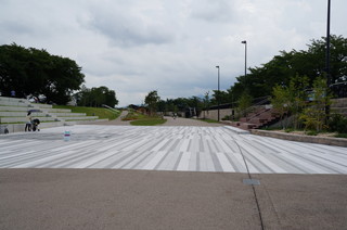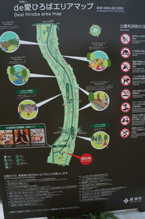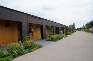 川底にいるのが変な気分ですが、両端に堤防があり、確かに川だったことがわかります。 しかし、公園は、いくつかのエリアできれいに整備されています。また、市民のための貸し出し集会所、ウォーキングの方のシャワールームも完備されています。 |
