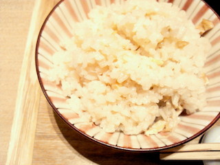 新しょうがの炊き込みご飯、爽やかな味でとってもおいしかったです。お味噌汁にはカボチャ、レンコン、ごぼう、しめじなどたくさんの具が入っていました。