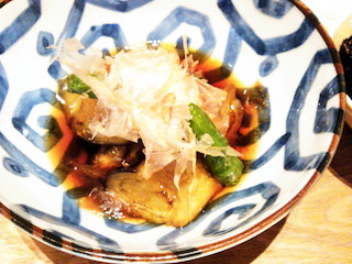 賀茂茄子・・・揚げたてのアツアツでヤケドしそうでしたが、柔らかくてお出汁がしみこんで、おいしかったです。上にたっぷり乗ったカツオぶしもいい風味をプラスしていました。 |