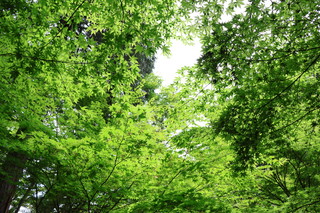 紅葉の名所ですが、この時期の青紅葉も素晴らしい!境内には心地よい空気が流れています。 |
