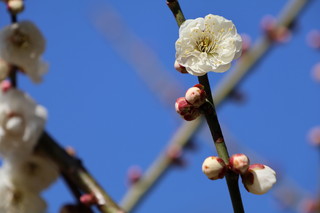 まだ、五分咲きでしょうか・・ 香りも良く、梅は、この満開前がきれいですね。 |