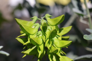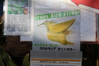 温室に入るなり、メガネが曇る、亜熱帯の空気に包まれています。 この日の見所には「Green Bird Flower」という、鳥に似た花を付ける株が紹介されていました。 確かに似ていますね。 |