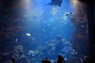 | 大水槽。エイがゆうゆうと泳いでいました。 | ペンギンゾーン。こんなに間近に見られるなんて、すごい。 |