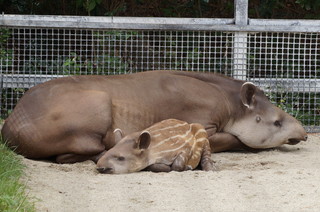 | ゾウの森。やはり近くで見ると大きいですね。 | こちらは、ブラジルバク。先日赤ちゃんが生まれました。 |