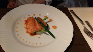 私は温野菜とフエダイがソースを境に対称的に盛り付けられているお皿でした。