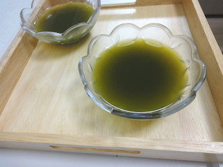 さぞかし疲れて帰ってくるだろうと思って、晩御飯の支度のときについでに抹茶ゼリーを作っておきました。
