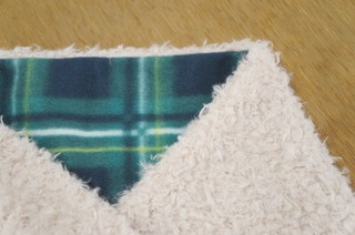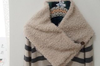 柔らかいプードルファーとチェック柄のフリースのリバーシブルになるマフラー。