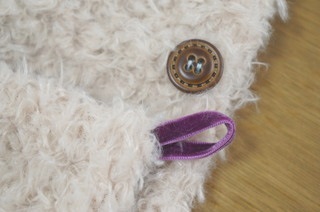 ただ、キットに入っていた、マフラーの両端に縫い付けるかわいいレーステープは省略しました。