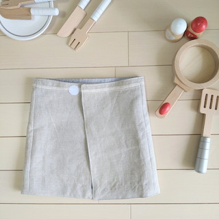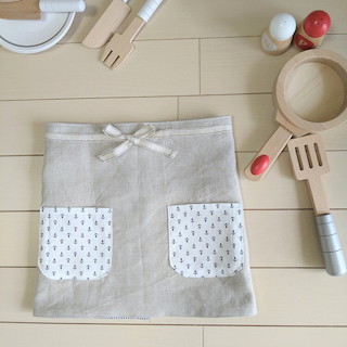 もう少し大きくなったらボタンが留められなくなりそうなので、そのときはひもをつけて通常のギャルソンエプロンのタイプに変えようと思っています。
