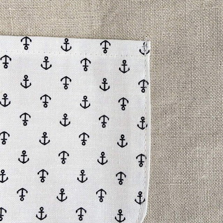 ポケットはネイビーのイカリマークの柄のもの。(これも家にあったものです)