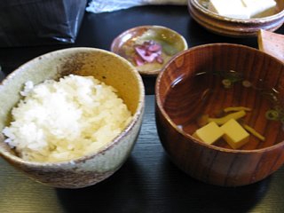 ごはんとお吸い物、お漬物です。