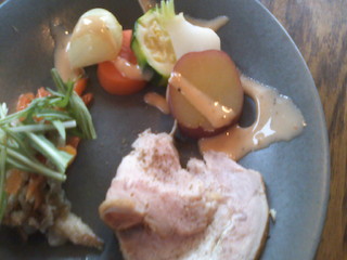 ・私がオーダーして 日替わりランチ。今日はデミグラスソースのかかったコロッケ。
