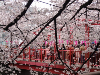| こちらは、「中の橋」。赤色の雰囲気のある橋です。橋の上からは多くの人が、この風景を写真に収めていました。 | 山手通りの目黒橋の上からパチリ! |