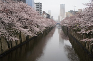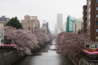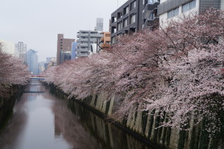 | 目黒川には、中目黒までにいくつかの橋が架かっています。こちらは中目黒方面です。素晴らしいです。 | こちらは、JR目黒方面です。 |