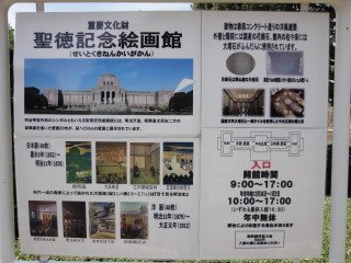 | 聖徳記念絵画館。1926年(大正15年)竣工した重要文化財です。 | 明治天皇を中心に成し遂げられた、維新の大改革、その輝かしい時代の勇姿と歴史的光景を史実に基づいた厳密な考証の上で描かれた80枚の名画があります。 |
