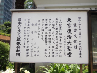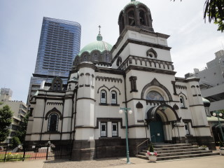 | 明治神宮外苑を後にして、旧岩崎邸に向かう途中の御茶ノ水で、ニコラス堂に寄りました。 | 明治24年に完成した、日本最大のビザンチン式建造物です。ニコライ堂の名で知られる東京復活大聖堂教会は、ギリシャ正教とも呼ばれる正教会の教会です。 |