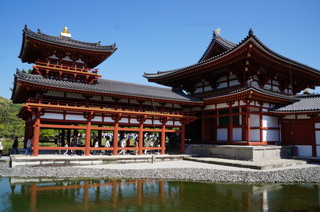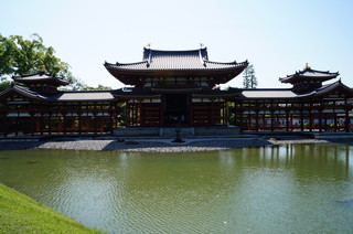 | 逆光でうまく撮れていませんが、10円玉の表の、鳳凰堂です。 | 改修が行われ建立当時の色が再現されています。 |