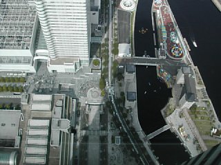 <場所> 横浜市みなとみらい 地下鉄 みなとみらい駅 上 <こんなところ> ・クイーンズタワー、国際見本市 など みらい都市空間を実現した臨海都市 ・ショッピングもオススメ! 定番の GAP、ユニクロ、コムサストアなどなど これも展望より ![]() 69階から下を覗くと・・・・! ![]() |