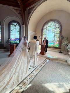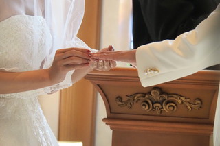 新郎新婦は指輪の交換をして、この先どんなことがあってもお互いを大切にし愛し続けると、親族、友人合わせて80名を超える皆の前で誓いました。皆からの「アモーレ!」のかけ声とチャペルが揺れるのではないかと思うような大きな拍手に、新郎新婦の目には涙。ここに新しいカップルが誕生しました。 |