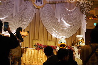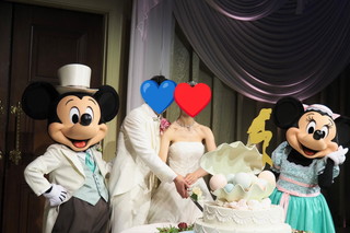 ウェディングケーキ入刀のときには、ミッキーとミニーが駆けつけてくれました。