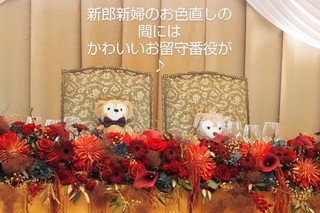 プリンセスの席には、新郎からのプレゼントのぬいぐるみ。大喜びのプリンセスでした♪ |