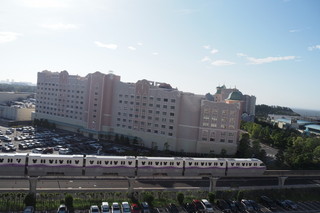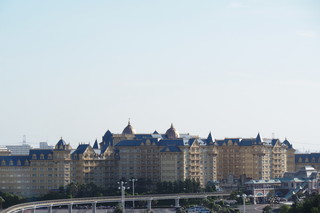 こちらは翌朝ベランダから見た景色です。朝日を浴びる東京ディズニーランドホテル。 |