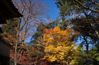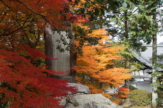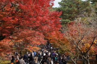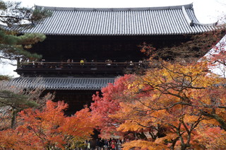 | 南禅寺のモミジも有名ですね、重要文化財の三門の手前から、そして三門をくぐり法堂の手前まで、色とりどりのモミジが楽しめます。境内では、苔に浮かぶモミジが印象的です。蹴上から程近く、永観堂も隣にあり、南禅寺・永観堂、そして哲学の道は、おすすめの散策コースで、春に秋に存分に京都を味わうことができます。 |