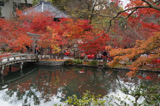 | 「モミジの永観堂」と呼ばれるに相応しい紅葉と庭園です。その色も赤がとっても良い色であり多くの観光客を惹きつけます。右下の写真は、多宝塔からの眺めです、そのモミジの多さと鮮やかさは圧巻です。京都では必ず行きたい名所と言えます。 |