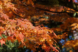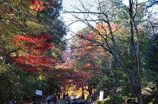 | 日吉大社は、滋賀県を代表する紅葉スポットのひとつです。京都の各寺院とは違い、森林の中に広く点在するモミジと、社殿は雰囲気も異なり、凛とした空気に包まれています。また、京阪坂本駅から日吉大社に向かう、その参道も、石垣にモミジが両脇に続き、どことなくのどかで昔懐かしい思いになります。京都からも京阪電車で近く、おすすめスポット言えます。 |