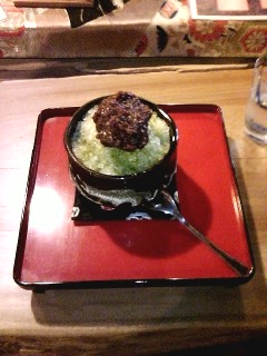 うちの長女が注文した抹茶あずきカキ氷。
