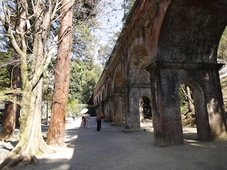 | 境内にびわ湖疎水の水道橋(1890年完成) | 水道橋は今も水が流れ、京都を潤しています。 |