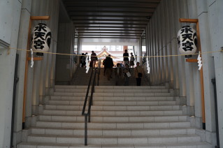 | 水天宮は建て替えされて、免振構造の立派なコンクリート建ての上に本殿があります。 ちょっと雰囲気でないですが・・・。 |
