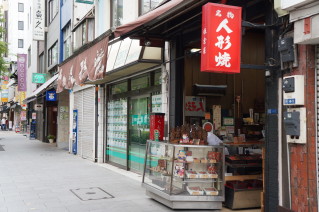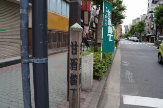 | 甘酒横丁。この道路沿いに甘味屋さんなど並んでいます。 左が、「祈りの幕が下りるまで」で出てきた、とらやき屋さん、ここに並んでましたね。 上は、麒麟の翼で出てくる厚焼き玉子のお店。 |