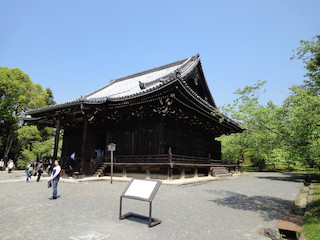 | 国宝の金堂。現存する最古の紫宸殿であり、当時の宮殿建築を伝える建築物として、国宝に指定されています。このゴールデンウィーク中には特別公開されていて、中の観音様や明王様を拝むことができます。とっても詳しいガイドさんがおられ、時代背景や建立のときのエピソードなどがよくわかりました。 | 五重塔 重要文化財で1644年に建立。東寺の五重塔と同様に各層の幅が同じ。高さ約36m。 |