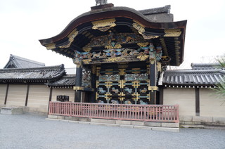 | 御影堂。参拝の方が写っていますが、その大きさが分かります。ここでは1200名が一度に参拝可能な大きさです。 | 国宝の唐門。その装飾が非常に美しい。 |