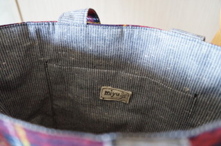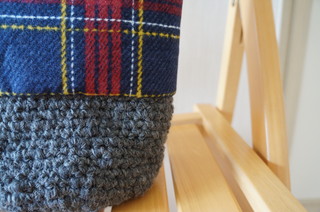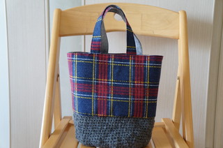 チェックの起毛したコットンとニット地を組み合わせたトートバッグです。