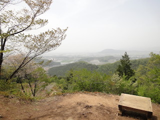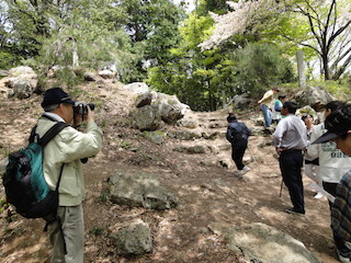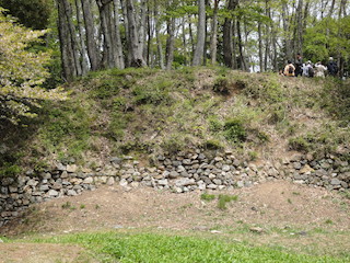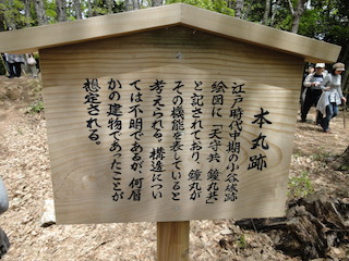 | この景色が、大河ドラマでも放映された、浅井長政、お市が、琵琶湖を眺めてお互いの思いを交わしたシーンです。実際にここでロケがされました。あいにく黄砂で琵琶湖が望めませんが、見通しがよければ本当に美しい景色が見られることでしょう。 | ここが、大広間と奥の石垣が本丸跡です。 ここで、江は生まれました。 |
