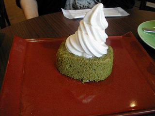 友達の一人が注文した抹茶ロールMAKIMAKI。同じくお米の粉で焼いた抹茶入りのロールケーキにソフトクリームがMAKIMAKIされています。