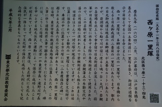 | 飛鳥山の手前に西ヶ原一里塚があり、徳川将軍が日光詣でをする日光道の2里目になるようです。 | 東京に残る現存する一里塚として貴重とのことです。 |
