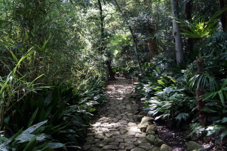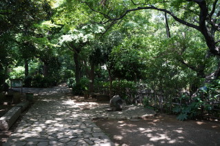 | 江戸末期の名主 畑野孫八の庭園跡になります。 | 少し怖いぐらいの薄暗さと細い道です。 |